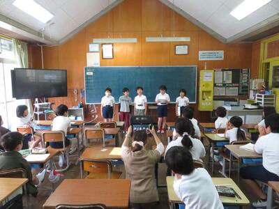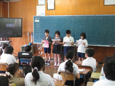国語では、グループに分かれて音読発表会をしました。