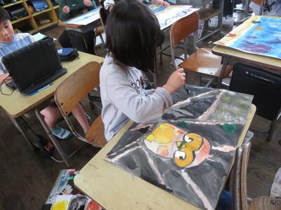 図画工作では、水彩絵の具に混ぜる水の量を工夫して、自由な表現を楽しみました。