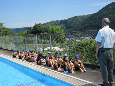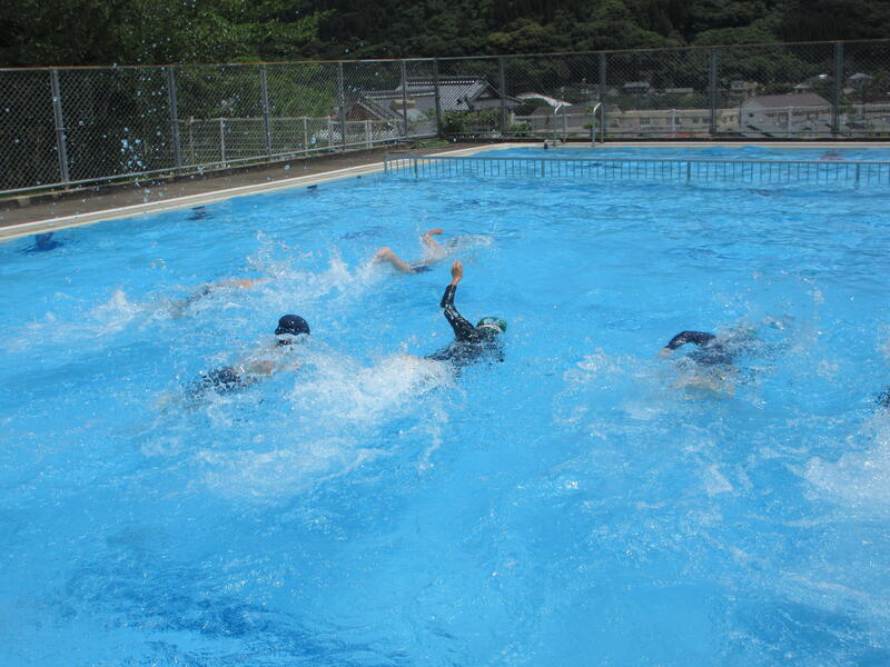 先日、プール開きがありました。今年も5、6年生がプール掃除をしてくれて、気持ちよくプール開きをすることができました。