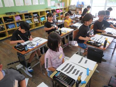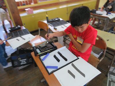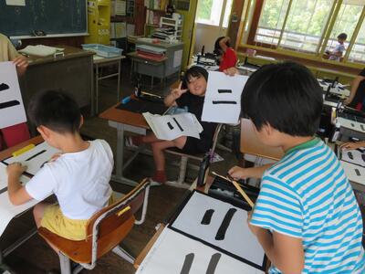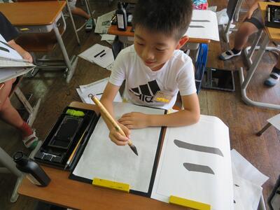 書いた漢字は「二」です。姿勢や筆圧などを考えて、お手本をよく見て、上手に横画を書くことにチャレンジしました。