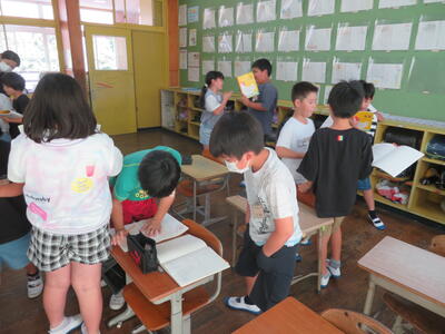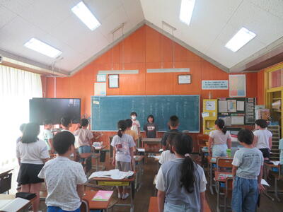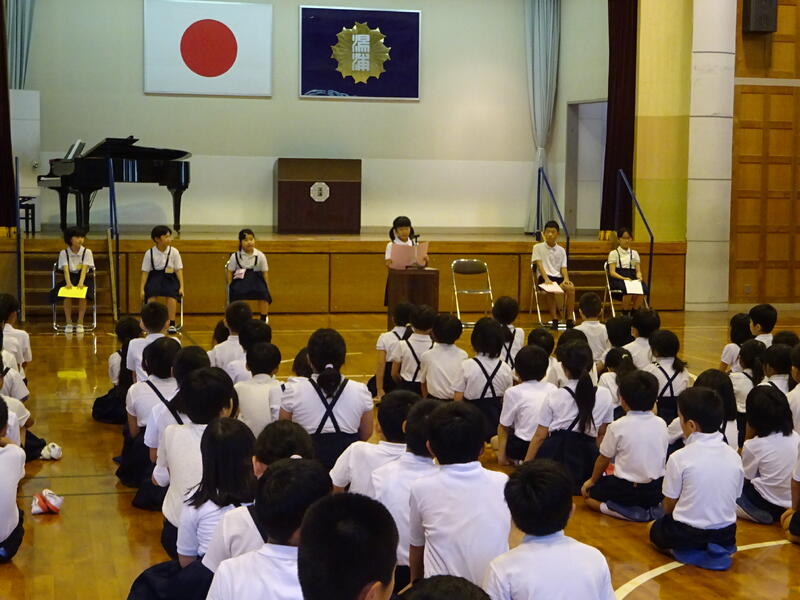 代表の児童が夏休みの思い出と2学期の目標を発表しました。とても立派でした。