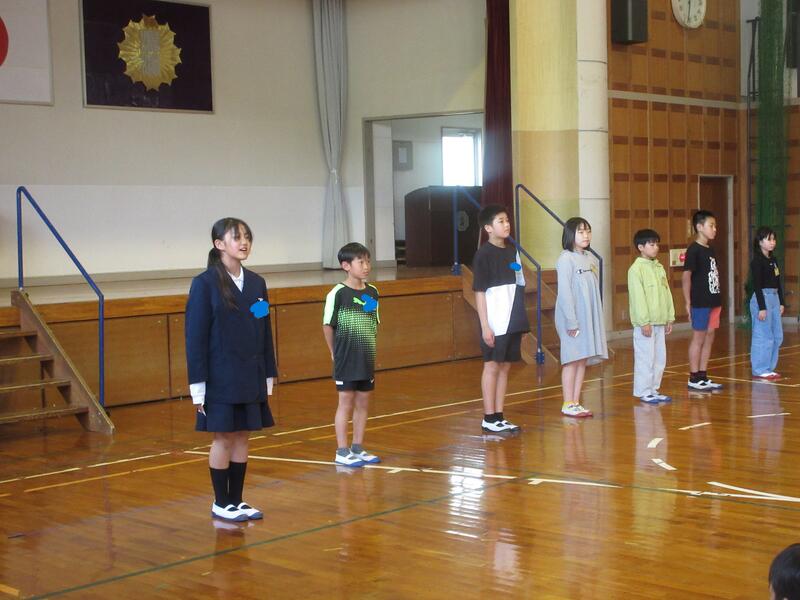 児童集会で各委員会活動の委員長から発表がありました。委員長の6年生は、1年間で頑張りたいことを堂々と発表することができました。