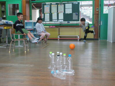 今日は、ペットボトルボーリングを楽しみました。