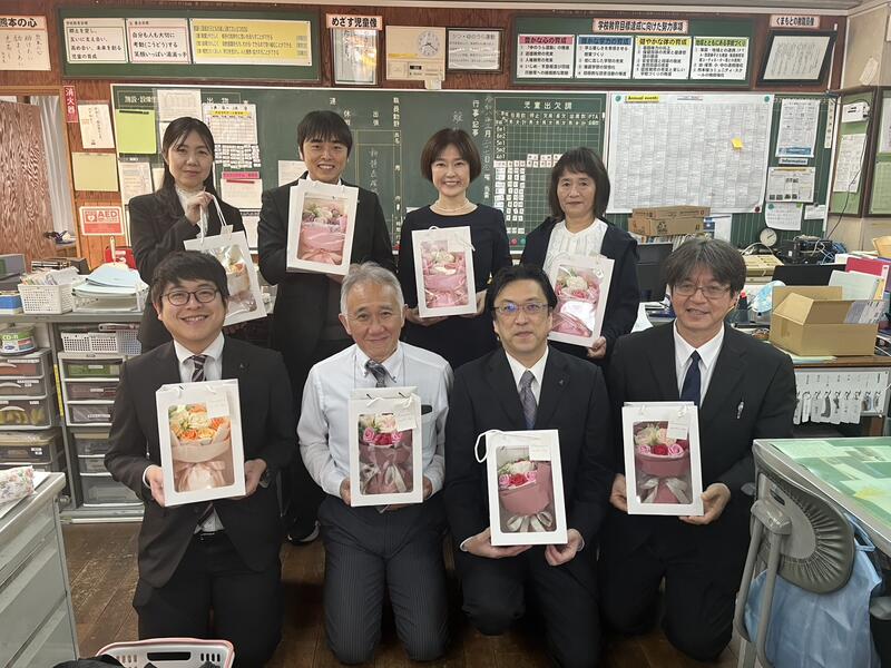 3月27日(木)、令和7年度で湯浦小学校を退任される8名の先生方に感謝の気持ちを込めて、PTAからプレゼントを贈りました。