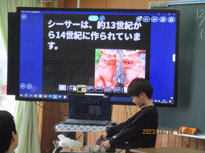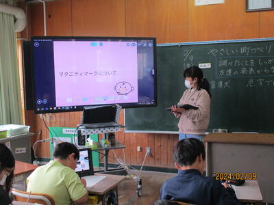 社会の最後の授業では、各都道府県の伝統的な建物や行事、伝統工芸品などについて一人一人が課題を持ち、調べたことを発表しました。自分なりにしっかりまとめて、分かりやすく伝える姿に成長が見られました。
