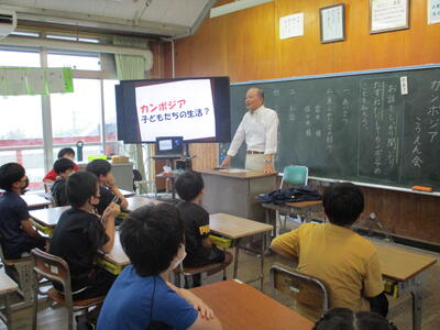 子どもたちは「総合的な学習の時間」に、自分たちでカンボジアについて知りたいことを調べていましたが、新しく学んだことも多く、お話の一つ一つに反応しながら貴重な時間を過ごしました。