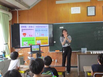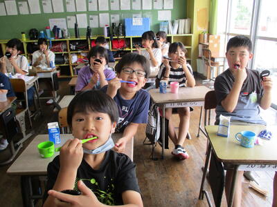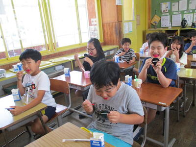 16日(木)の学活では「歯の磨き方」について学習しました。この日は養護の清田先生に、「歯磨きの大切さ」や「上手な歯の磨き方」についてお話をしていただきました。また子どもたちの歯磨きの状況を確認するために染め出しをしました。子どもたちは、真っ赤に染まった自分の歯を丁寧に磨き直してきれいになった歯に喜んでいました。今後の歯磨きも楽しみです!