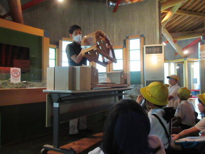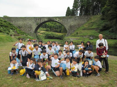 「石匠館」では、石橋づくりの中心となった「種山石工」についてのお話を聞いたり、通潤橋の仕組みを学んだりするなど充実した一日になりました。天気にも恵まれ、子どもたちはとても元気に一日を過ごしていました。