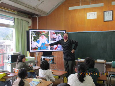 ALTのディラン先生から 外国語クリスマスの様子を紹介していただき、それについての質問ゲームを楽しみま