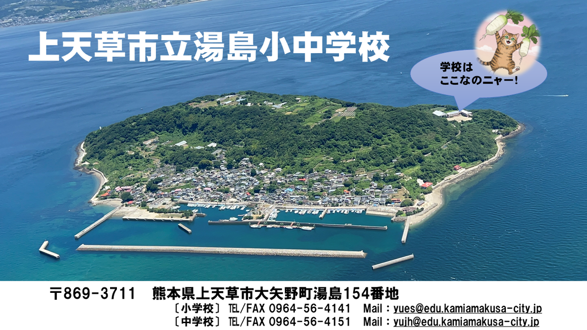 大矢野島と島原半島の間に浮かぶテーブル状の島が湯島です。またの名を「談合島」と呼ばれ、天草島原の乱の一揆軍が合議を巡らせた場所としても知られています。