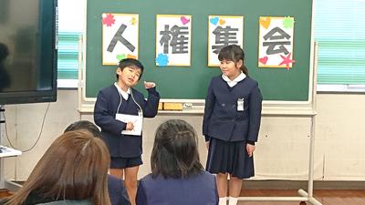 人権集会では、それぞれの学級で学んだ人権についての学習や人権宣言についての反省、作文・「感謝の手紙」発表がありました。保護者の方にも真剣な表情で発表する子どもたちの姿を見ていただけたと思います。