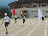 次は、開会式の練習です。開会のことば、優勝旗返還、誓いのことば、準備運動、退場の練習をしました。