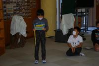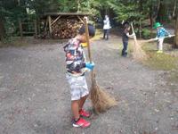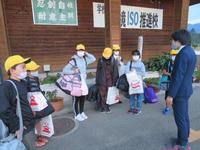 出発式を行い、「どう行動するか」、めあてをもって、それぞれの場所に出かけました。手作りの竹ぼうきを持って行きました。