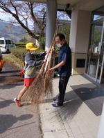 桜寿園では、窓を拭いたり、落ち葉をはわいたりしました。
