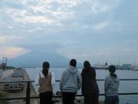 午前6時起床。身支度を調えた子供たちは、朝の散歩に出かけました。港に停泊する船舶や桜島を見ることができました。