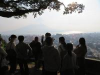 ホテルを出発し、城山展望所へ。鹿児島市中心部、錦江湾、さらには桜島を一望することができました。