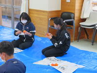 子供たちも楽しそうに柿の皮をむき、できあがったときは満足そうな表情でした。片付けまで頑張りました。