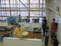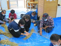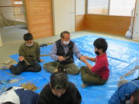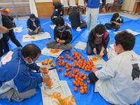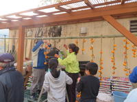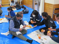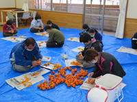 コミュニティ・スクールの方々の協力を得て、干し柿づくりを行いました。