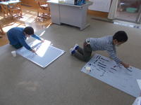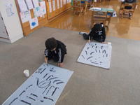 子供たちは筆を初めて使うので、嬉しくてたまらない様子。