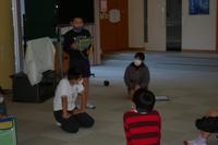 水上駐在所の甲斐さん、教育委員会の松平さん、子供見守り安全ボランティアの右田さん、井上さん、立尾さんにお越しいただき、「見知らぬ人から声をかけられたら、どうする?」ことを学ぶことをねらいに、避難訓練を行いました。