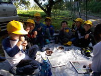 最後は、煮たばかりの栗をおいしくいただきました。大満足の秋探検でした。