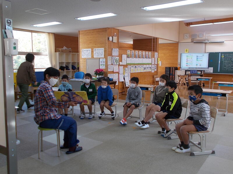 11月は、湯山小学校の読書月間。地域の方にお願いして毎週月曜日に読み聞かせに来ていただくことになりました。