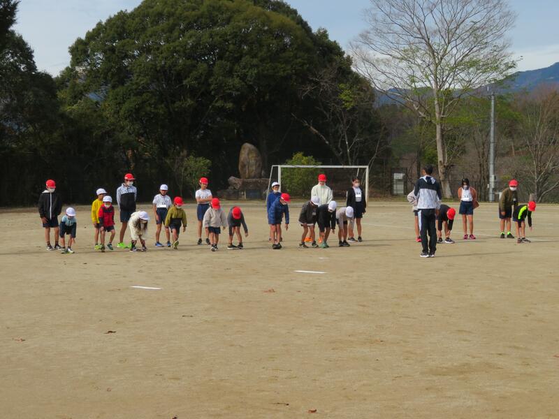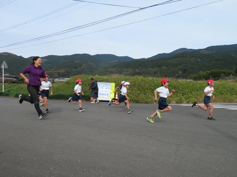 12月9日(金)に持久走大会が行われます。子どもたちは、大会に向けて練習のまっただ中。今日も、地域おこし協力隊の皆さんにアドバイスをいただきながら、試走を行いました。