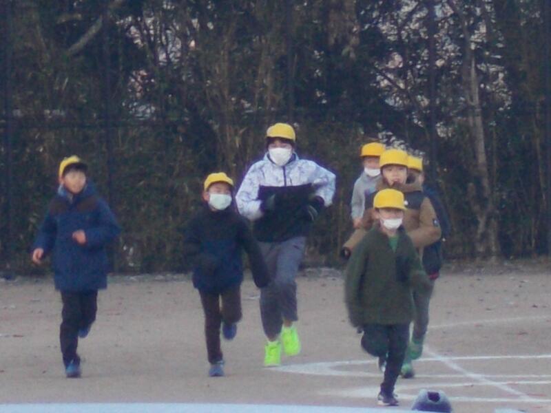 始業前の運動場には、持久走の練習に励む子どもたちの姿がありました。寒さに負けず元気に過ごしてほしいです。