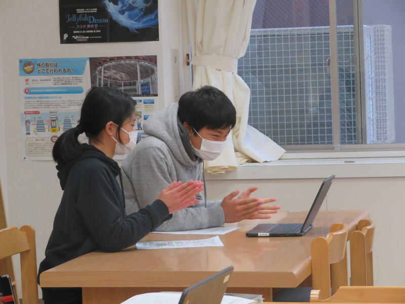 教室でお話をしっかり聞いています! 感想発表に拍手をする進行役