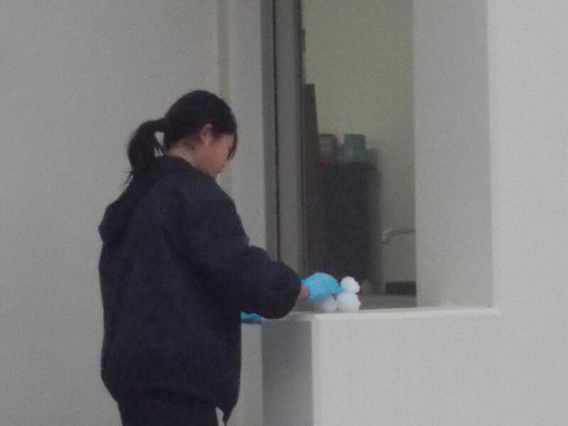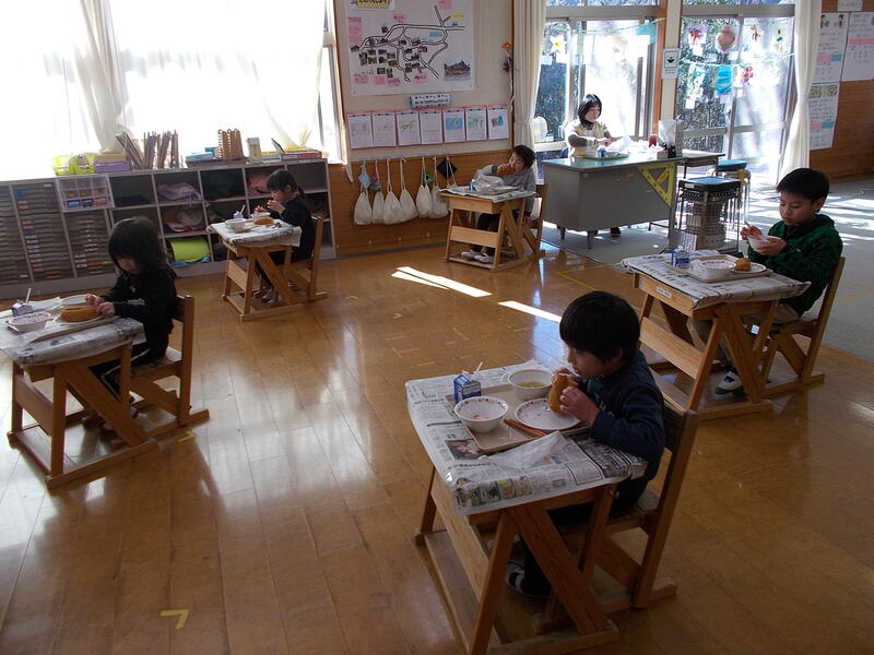 1・2年生はこぼさないように新聞紙を敷いています。