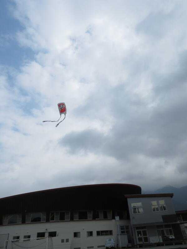 この日は、あまり風がなく、あがるかどうか心配しましたが、風がなくてもなんのその。全速力で走って、屋根より高くあがったたこもありました。