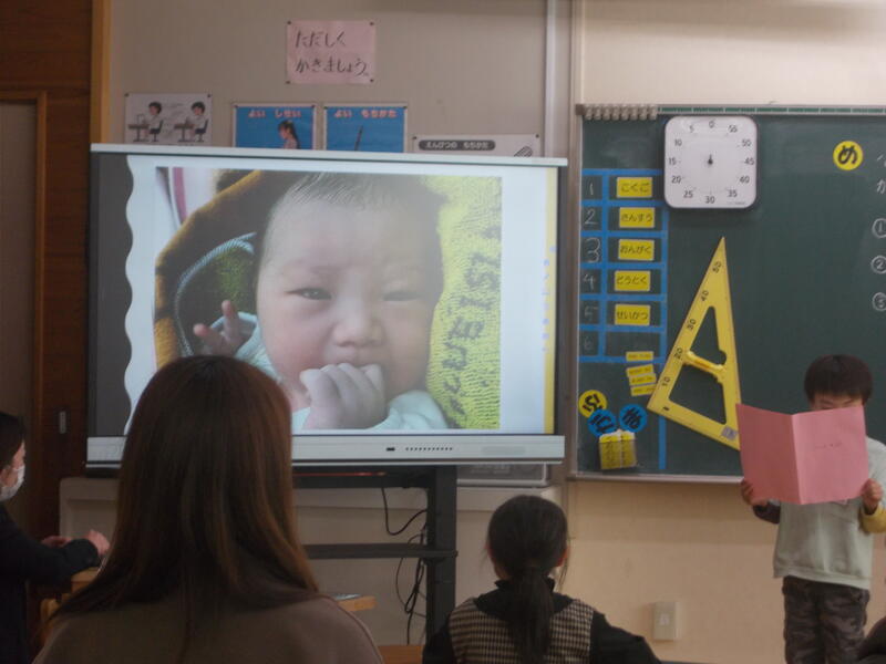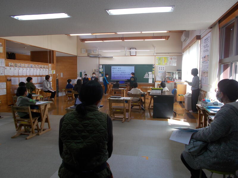 1,2年生は生活科で、小さい頃のことやできるようになったことを発表しました。3,4年生は総合的な学習の時間で、これまで調べてきた環境に関することを、自分たちでプレゼンテーションにまとめて発表しました。5,6年生は学級活動で、今年度の目標の達成度や今後頑張りたいことを、おうちの方と一緒に振り返りました。