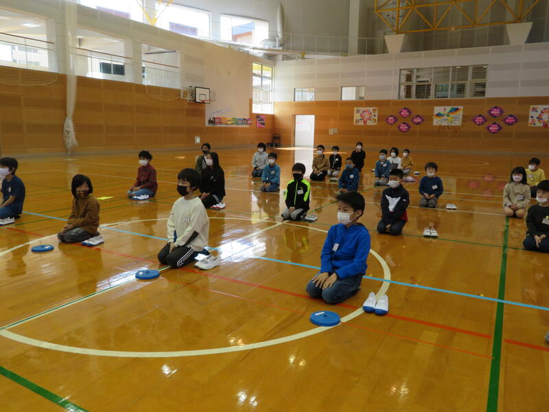 背筋を伸ばしてお話を聞く1・2年生