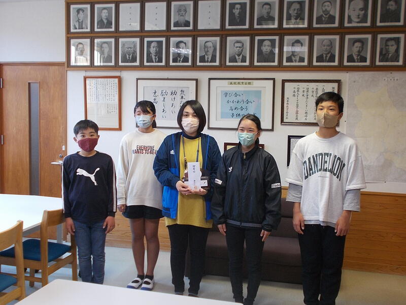 今年は、子どもたちとも相談し、もち米を販売した収益金も一緒に寄附させていただきました。6年生が学校の代表として担当の方にお金を渡すと、担当の方は、子どもたちの気持ちにとても感激された様子でした。6年生も嬉しかったことでしょう。
