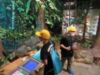 かごしま水族館に到着。館内を班別に見学しました。黒潮大水槽には、ジンベイザメやカツオ、マグロが群れて泳いでいました。