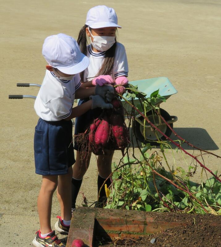 いっぱい茂ったつるをひっぱると、立派なサツマイモがたくさん出てきてくれました。あまりの大きさに大興奮の子どもたちでした。