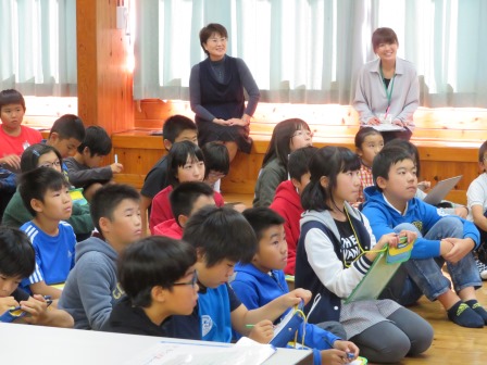 2年生が生活科の学習で生きもののおもしろさや不思議さを調べました。調べてわかったことから問題を作り、「やまびこ朝会」の時間に発表しました。問題を出すたびに、答を発表するたびに、「わぁ!」「えっ!」と声があがりました。その声に2年生は、してやったりと満足の様子でした。