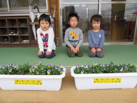 子どもたちの学習活動等でお世話になった地域関係機関のみなさまのところにビオラの苗を移植したプランターを届けました。また、保護者の協力を得て、一人暮らしのお年寄りのみなさまのお宅へビオラの鉢を届けました。
