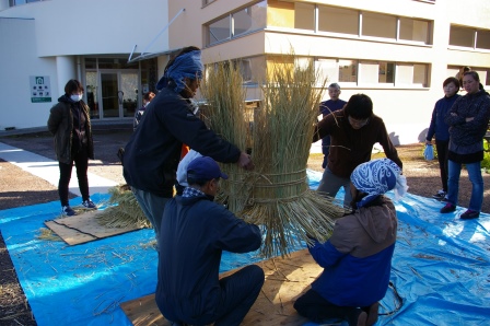 6年生児童とPTA本部役員、美化部員で門松を創りました。伝統的な手順を踏み、重厚感のある門松ができました。17日の朝、登校してきた子どもたちも、見る門松の姿に感嘆の声をもらしていました。
