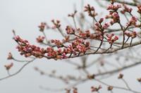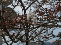 ダム湖畔では、桜の花がほころび始めました。学校の桜は、明日を待っているようです。