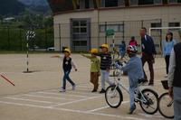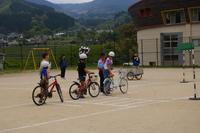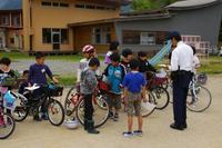 交通安全について正しく学び、きちんと実行できるようになることを目的に、交通教室を行いました。はじめに、体育館で、身近な行動場面から危険を見つける学習をしました。水上駐在所の甲斐さんから、「待つ」「止まる」「見る」ことが大切だと学びました。その後、1・2年生は、信号機のある交差点での横断歩道の渡りました。3~6年生は、自転車点検を行い、自転車で通行しました。交通指導員さんからたくさん教わりました。ありがとうございました。