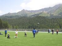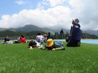 学校を出発し、高澄まで歩き、スクールバスで「水上スカイヴィレッジ」へ行きました。「水上スカイヴィレッジ」の全天候型グラウンドを見た子どもたちからは、「ウォー!」と感嘆の声が漏れました。全員がその見事さに「すごい」と驚いていました。お弁当を食べ、グラウンドで思いっきり遊びました。