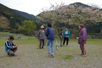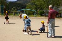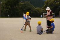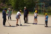北目と馬場、高澄の老人会の皆様とグラウンドゴルフで交流をしました。子どもたちは打ち方を教わりながらコースを進みました。
