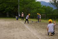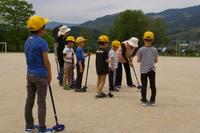 初夏を思わせる快晴の空、まぶしいくらいの陽光に新緑が輝いているように見えました。覚井と神揚の老人会の皆様と、児童がグラウンドゴルフで交流しました。ありがとうございました。