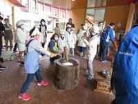 まずは、餅つき。保護者や地域の方に見守られ、杵で餅を付きました。