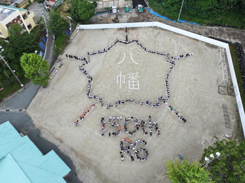 【7月5日(金)児童、保護者、地域の皆様、実行委員会役員で記念人文字撮影をしました。】