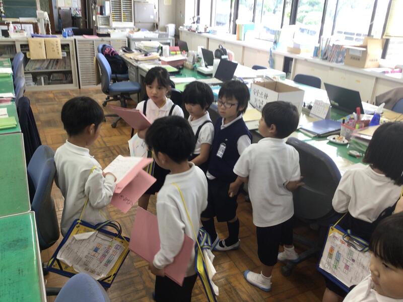職員室や校長室では、教頭先生や校長先生が子どもたちの質問にやさしくこたえてくださいました。普段はなかなか入ることができない特別教室に、子どもたちは少し緊張しながらも嬉しそうな笑顔を見せていました。
