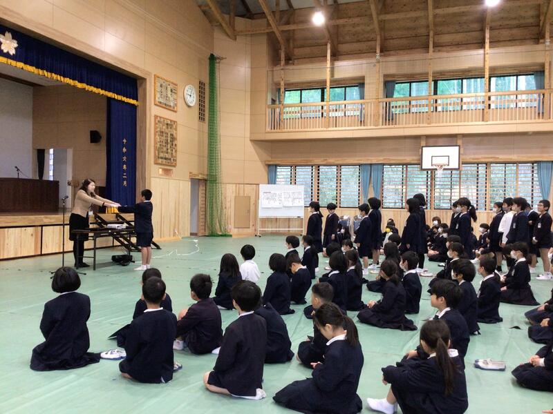 3月21日木曜日、竣工されたばかりの真新しい体育館で修了式が行われました。1~6年生の代表児童が校長先生から修了証を受け取りました。