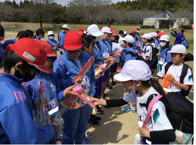 1~3年生は約1kmのコースを走り、4~6年生は縦割り班の12チームに分かれ、タスキを繋ぎました。肌寒い一日ではありましたが、子どもたちは寒さに負けず、一生懸命走りました。声援や拍手も後押しし、練習以上にラストスパートは力を出し切っていた子どもたちでした。一人一人がベストをつくした長距離走・駅伝大会でした。ゴールした子どもたちの表情は、清々しかったです。