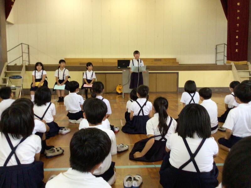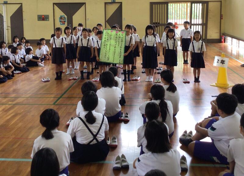 式では、代表児童4名が1学期に頑張ったことや夏休みに取り組みたいことなどを発表しました。
